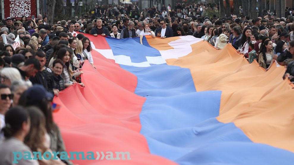 The protesters criticized recent remarks by government officials suggesting that the return of Artsakh Armenians is unrealistic and that the Artsakh issue “is closed”.