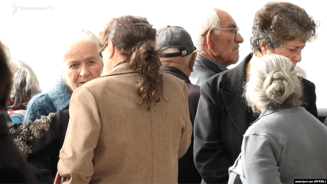 Ruzanna Stepanian Azatutyun.am Elderly people receive their pensions at a post office in Yerevan, December 5, 2025. With just over three months left before parliamentary elections, Prime Minister Nikol