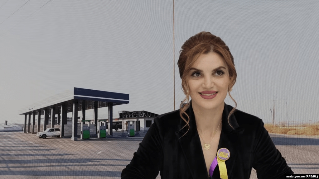Anush Mkrtchian Azatutyun.am A photo of former Vagharshapat Mayor Diana Gasparian juxtaposed against a view of a gas station owned by her father-in-law. An Armenian law-enforcement agency on Wednesday