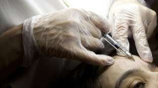 Botox Treatment, Woman, Center for esthetic medicine, Paris, Injecting botulinum toxin to fill in forehead wrinkles. (Photo By BSIP/Universal Images Group via Getty Images)