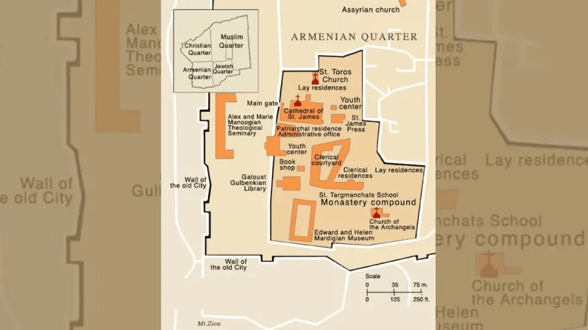 The Armenian Quarter today constitutes roughly 14% of Jerusalem’s Old City. It is home to Armenian families, as well as theology students and monks affiliated with the Brotherhood of St. James. However, in 2023, reports surfaced of a controversial deal involving the leasing of approximately 25% of the Armenian Quarter to an Israeli company to construct a seven-star luxury hotel in a part of the quarter. Since then, residents and their supporters have launched legal campaigns to protect their homes and historic landmarks.