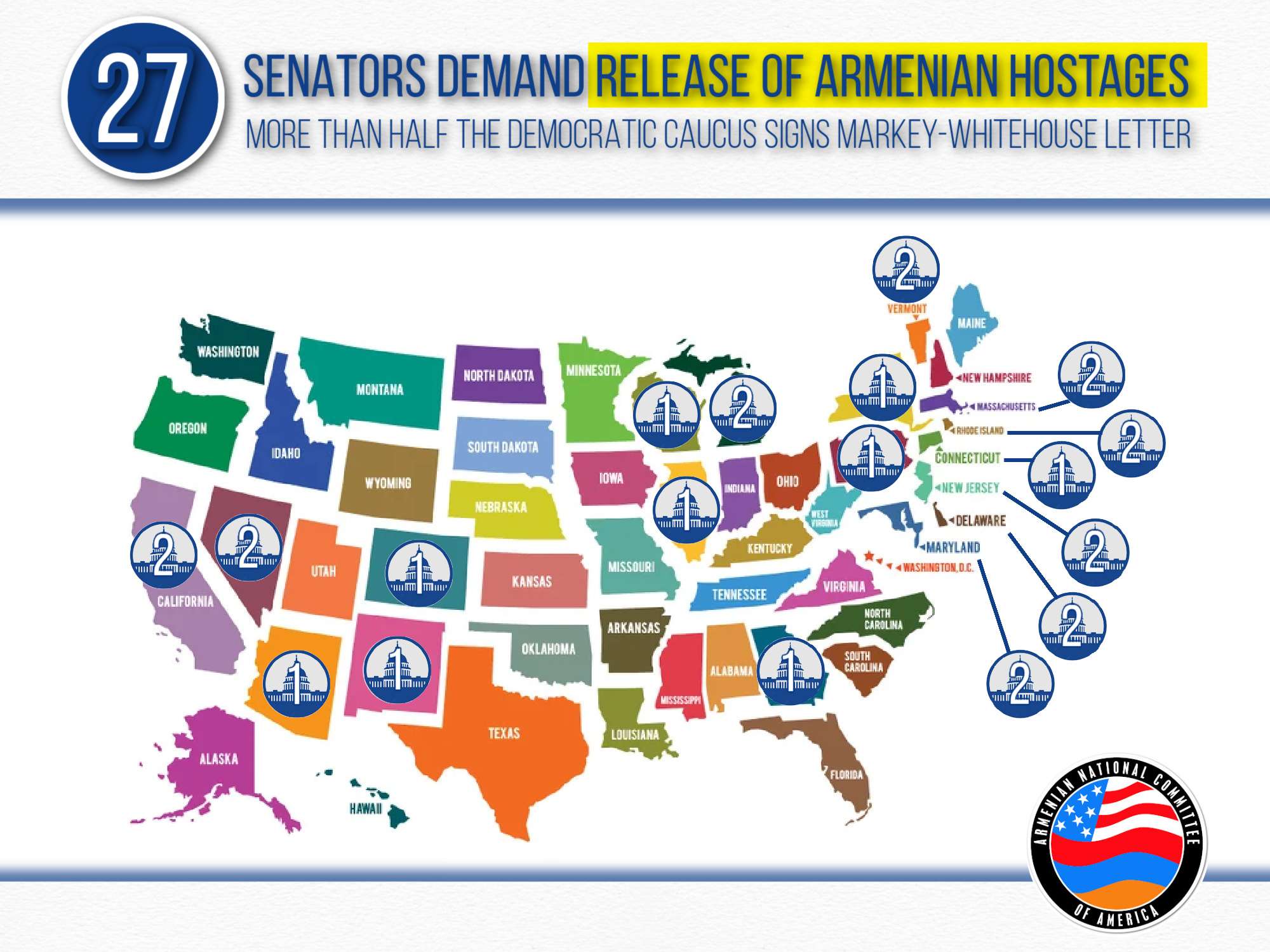 The Armenian National Committee of America (ANCA) has been mobilizing nationwide to secure support for the Markey-Whitehouse letter through direct advocacy on Capitol Hill and in Congressional districts across America. Armenian Americans contacted their Senators through anca.org/prisoners, urging them to cosign the letter before the deadline.